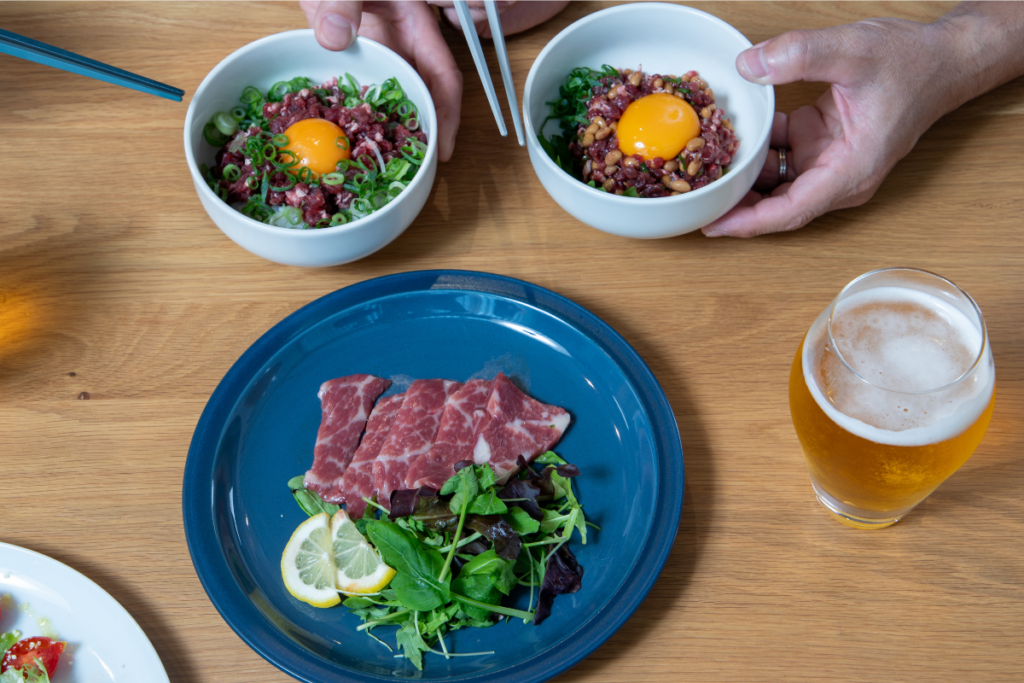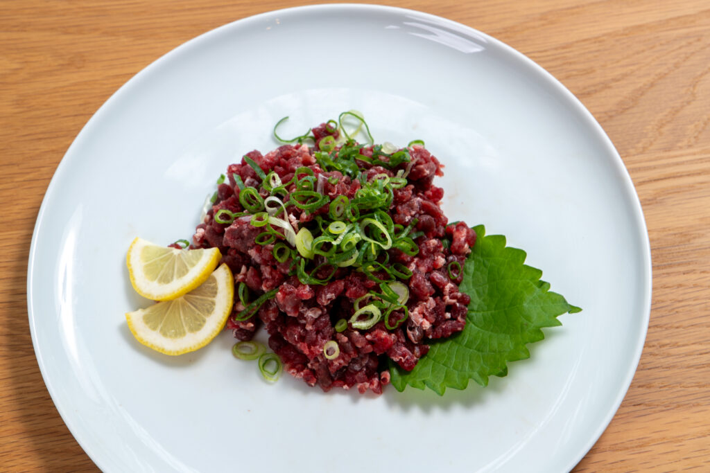 赤身と脂が重なり合い、上品な馬肉の味わいと脂の甘みがいっしょに楽しめます。