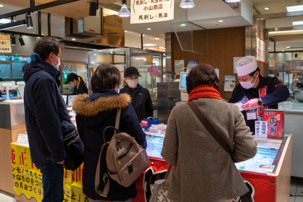 「ここの馬刺しを楽しみにしてたよ」 「阿蘇までなかなか行けないから、ここで買えるのが嬉しい」